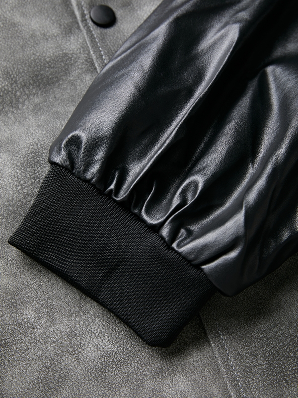 Men’s Tie Dye Embroidery Leather Splice Jacket