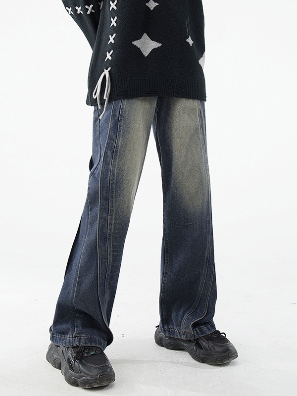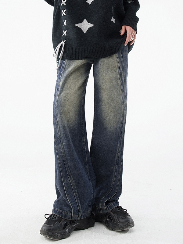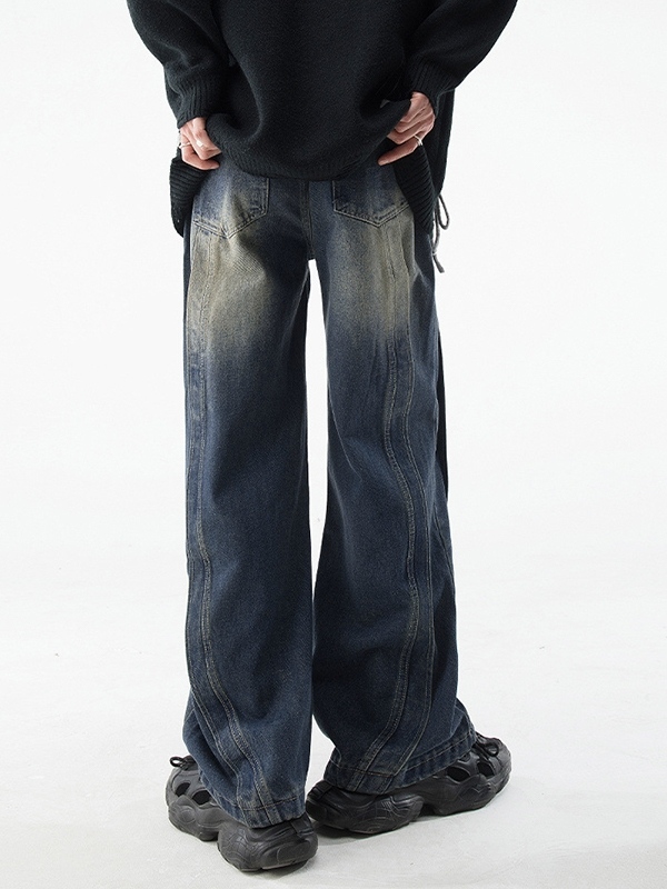 Men’s Vintage Wash Splice Loose Jeans