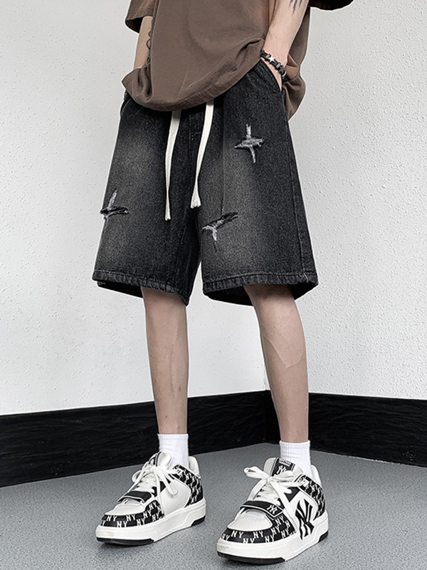 Men’S Washed Ripped Straight Denim Shorts