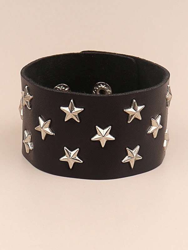 Punk Chunky Star Pu Leather Bracelet