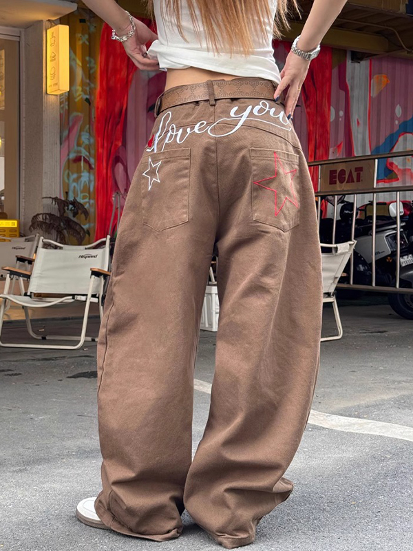 Retro Star Letter Embroidery Boyfriend Jeans