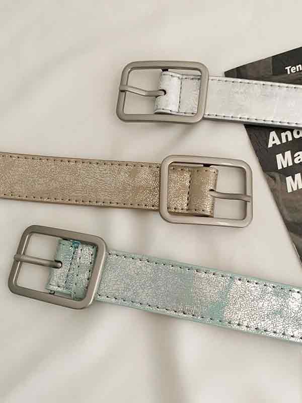 Solid Color Crack Design Buckle Belt