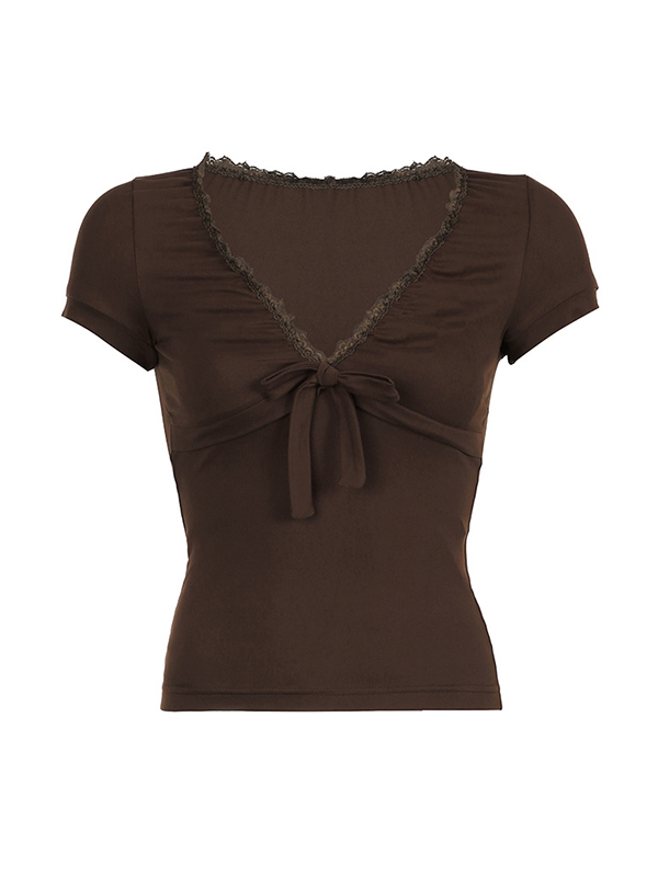 Solid Color V Neck Short Sleeve Tee