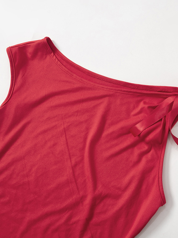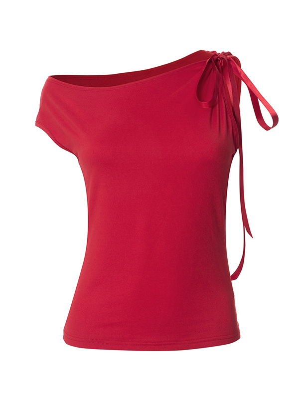 Solid One Shoulder Tie Up Short Slevee Tee