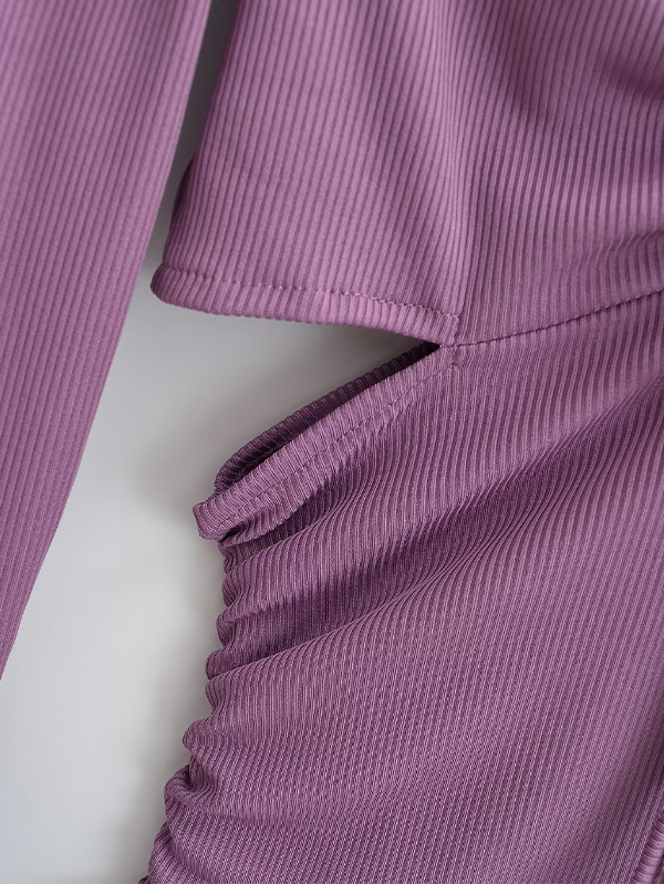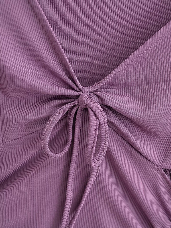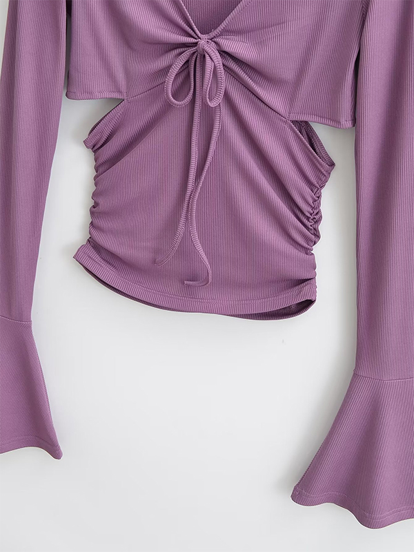 Solid V Neck Side Cutout Trumpet Sleeve Long Sleeve Knit