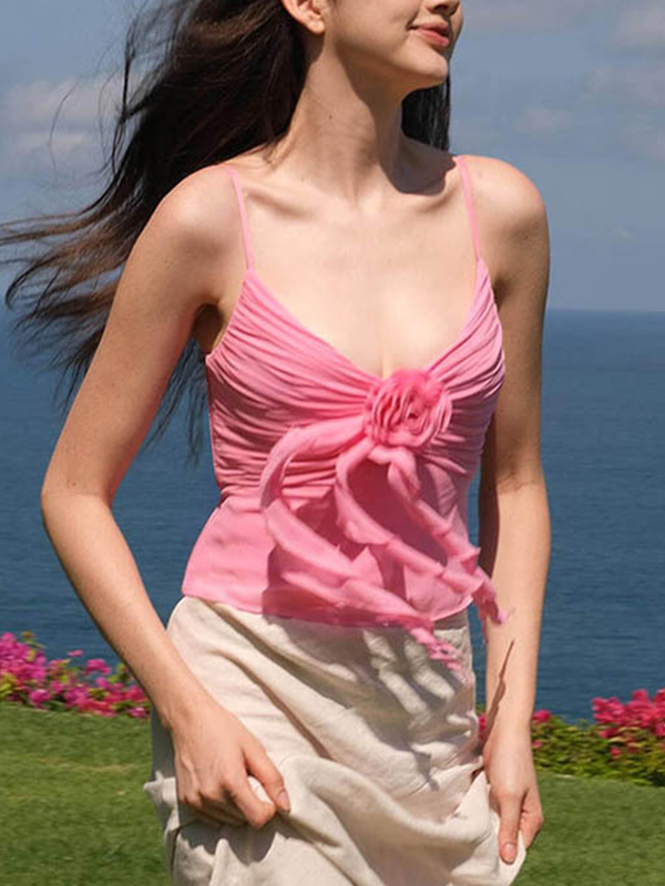 Three-Dimensional Flower Gathering Cami Top