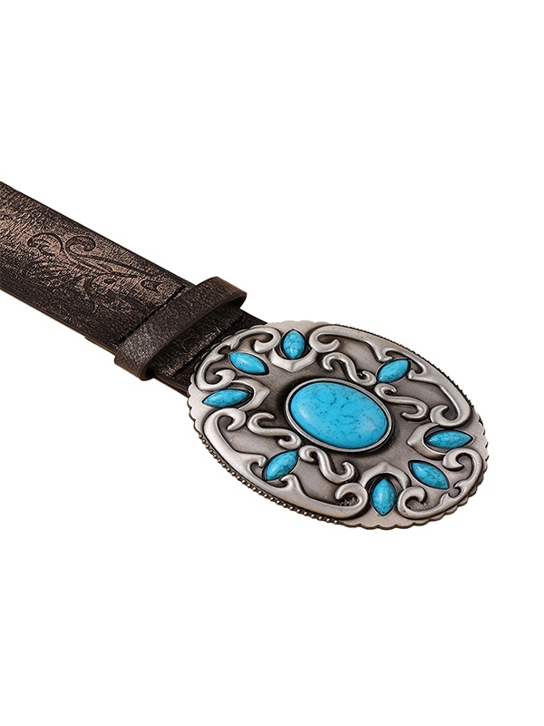 Tribal Engraved Blue Gem Decor Buckle Belt