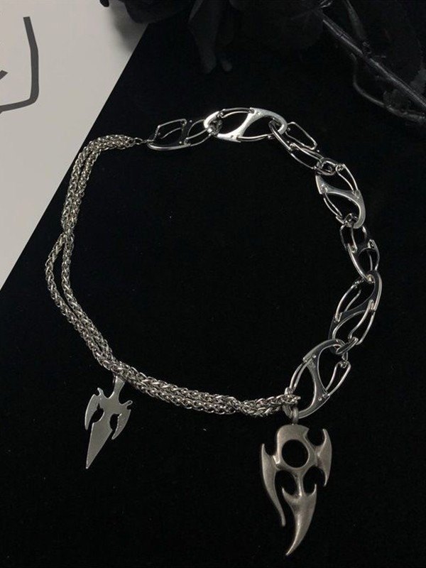 Tribal Flame Pendant Link Chain Necklace