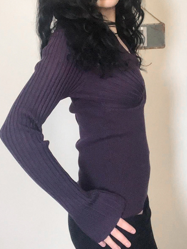 V Neck Low Cut Long Sleeve Tee