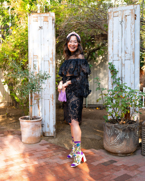 Calcetines de media caña transparentes con estampado floral de vidrieras