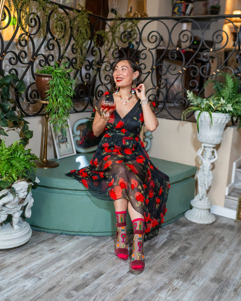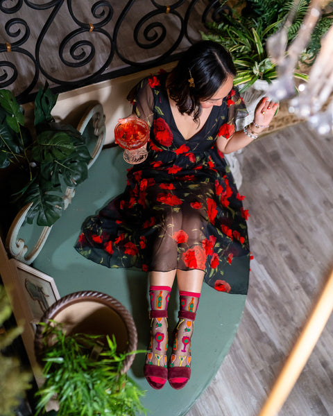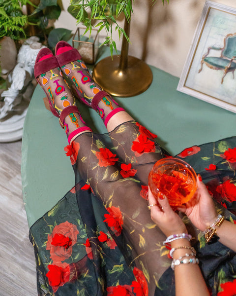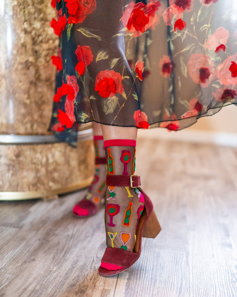 Calcetines negros transparentes de media caña para la hora del cóctel