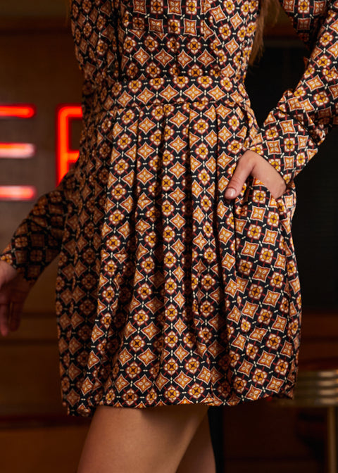 Minifalda plisada con estampado geométrico