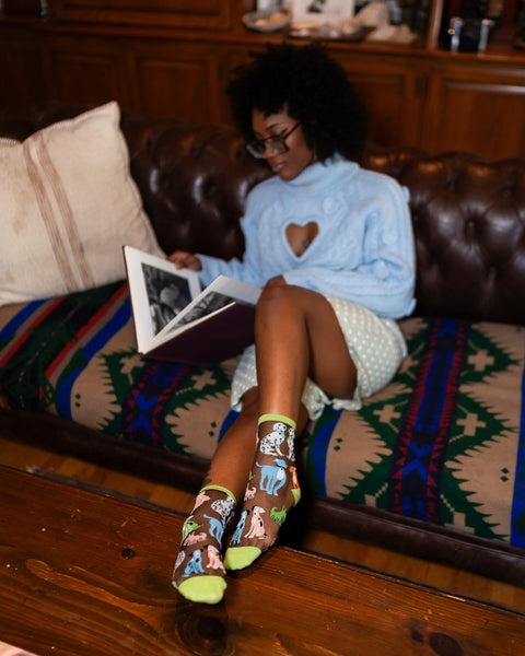 Calcetines negros transparentes con estampado de perros dopaminérgicos