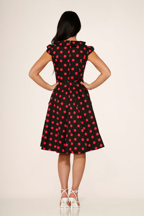 Vestido swing de lunares negros y rosas