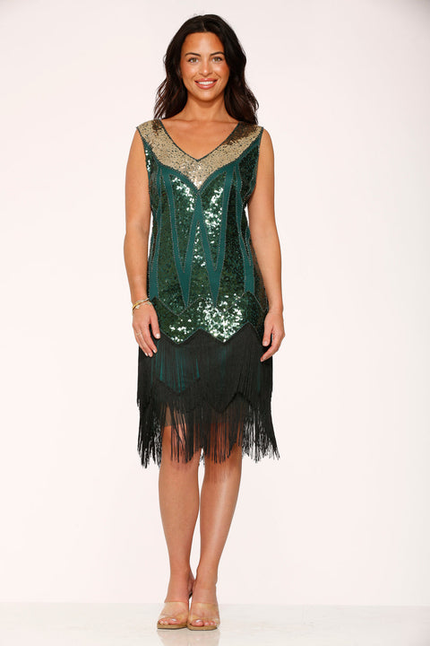Vestido verde estilo flapper